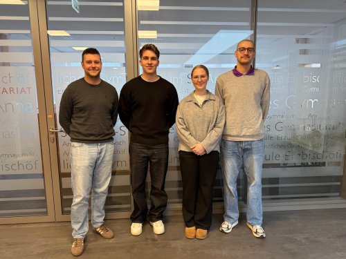 Der nächste Schritt zum LehrerdaseinSt. Anna begrüßt die neuen Praxissemesterstudentinnen und -studentenSeit dem 23. Februar 2026 verstärken vier neue Praxissemesterstudierende unser Kollegium. Bis zum Ende des Schulhalbjahres im Juli werden sie aktiv am Unterrichtsgeschehen teilnehmen, eigene Stunden planen und durchführen sowie vielfältige Eindrücke vom schulischen Alltag gewinnen. Das Praxissemester bietet ihnen die Gelegenheit, theoretische Studieninhalte mit praktischen Erfahrungen zu verknüpfen und ihre Rolle als angehende Lehrkräfte weiterzuentwickeln. Auf dem Foto sind von links nach rechts Herr Felix Poser (Geschichte/Mathematik), Herr Daniel Zwein (Sport/Englisch), Frau Melina Pfeiffer (Deutsch/Geschichte) und Herr Frank Brose (Biologie/Spanisch) zu sehen. |