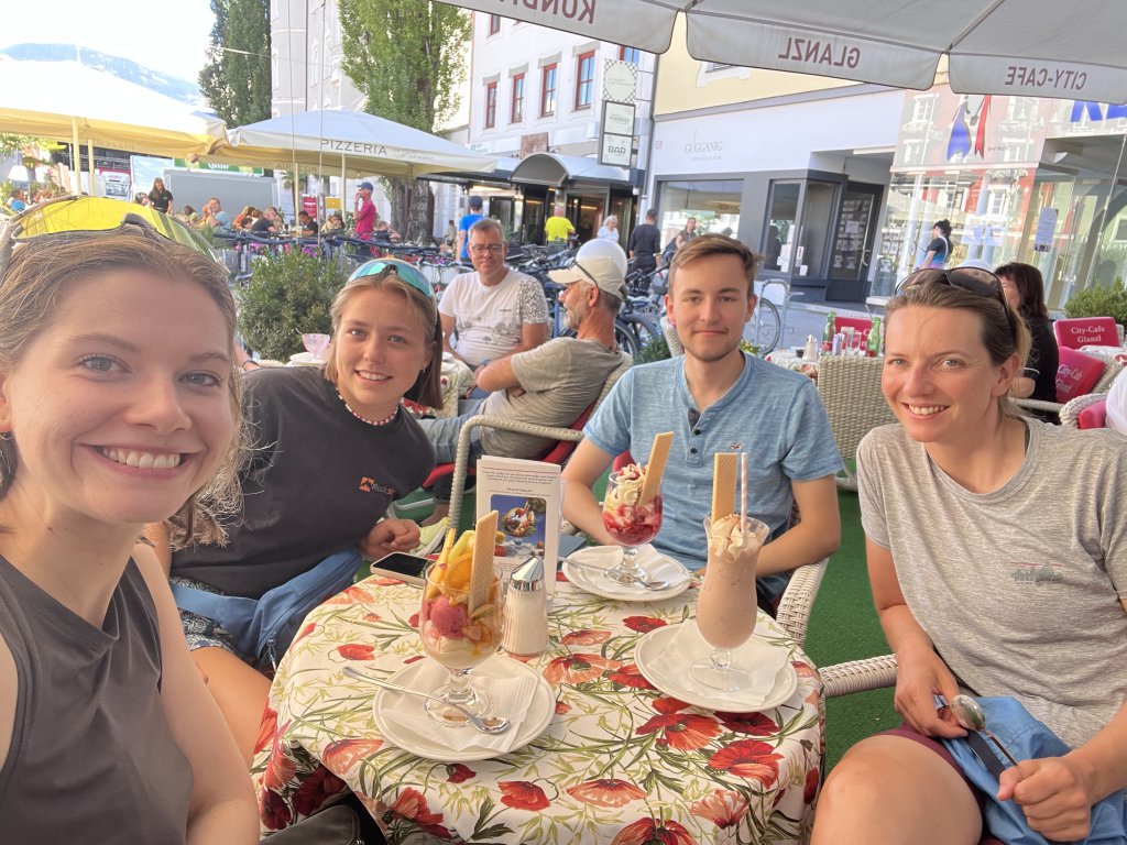 Danach hieß es: einchecken, endlich ausgiebig duschen und dann noch einmal Lienz bei Sonnenschein (26 °C!) erkunden. Den Abschluss bildete ein gemeinsames Pizzaessen mit guter Laune, einem Glas Wein, leckeren Pizzen und dem Gefühl, etwas Großes geschafft zu haben.