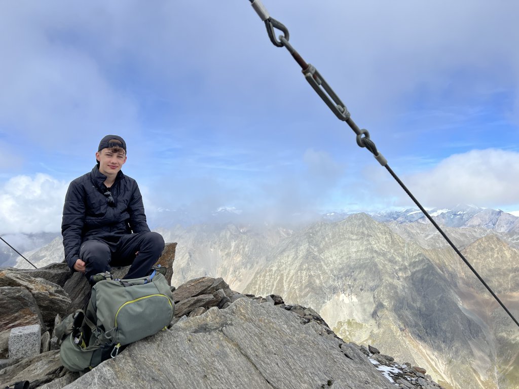 Die Petzeck-Gruppe stand nach ca. drei Stunden erfolgreich auf dem höchsten Berg der Schobergruppe (3.283 m). Oben lag sogar noch etwas Schnee, und zeitweise hatten wir freie Sicht auf den Großglockner, das Kitzsteinhorn und die Venedigergruppe. Paul S. musste feststellen, dass es viel entspannter ist, wenn man hinter dem „Bergführer“ geht – in diesem Fall war das Jonatan M., der uns in meditativer Ruhe und einem sehr gutem Gespür für den Weg zum Gipfel führte. Insgesamt waren wir fast acht Stunden unterwegs: 900 Höhenmeter rauf und 1.470 Höhenmeter runter.