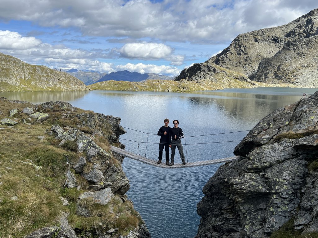 Einschub von Frau Franke: Wir, das sind Mark, die beiden Pauls und Antons, Joni, Janic, Nick, Franz und ich, wanderten zu den Langtalseen und schaffen damit Platz zur Reinigung der Hütte. Zunächst ging es 20 Minuten wieder bergauf, was zum Unmut einiger Schüler doch anstrengend war und mit der Aussage: „Warum wandern wir am Ruhetag?!“ begleitet wurde. Anschließend ging es weitere 20 Minuten zum See und als wir uns schon fragten, wann der See endlich kommt, erstreckte er sich plötzlich in tiefem Türkis vor uns, zwischen steilen Berghängen, unter fast wolkenlosem blauen Himmel. Die Jungs sprangen sofort ins kalte Wasser und zogen eine kleine Runde. Krebsrot, aufgrund der Kälte, krochen sie wieder aus dem Wasser und packten sich in dicke Jacken und Mützen ein. Danach wurde sich eine halbe Stunde in der Sonne aufgewärmt und anschließend der Rückweg angetreten. -