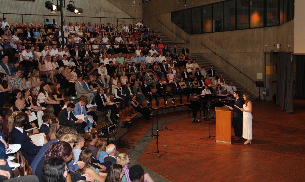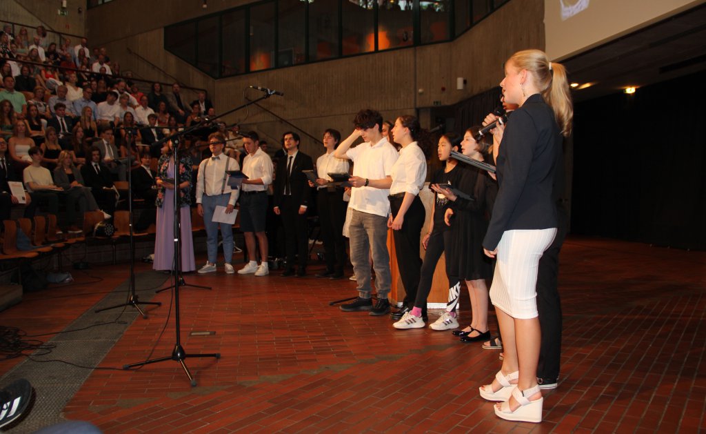 Auch wenn es jedes Jahr dieselbe Prozedur ist, eine Verabschiedung eines Abiturjahrgangs an St Anna ist immer eine stimmungsvolle Angelegenheit. So auch in diesem Jahr, als sich die 120 feierlich gekleideten Abiturientinnen und Abiturienten des "Anna Vegas"-Jahrgangs samt ihrer stolzen Eltern weiterer Familiernangehöriger im Forum unserer Schule versammelten. Selbstverständlich begann der Vormittag mit einem festlichen Gottesdienst, gefolgt von den Reden der Jahrgangsstufenleiter, anschließend der Abiturientia und der Schulleitung, die von Rückblicken auf die gesamte Schulzeit, aber besonders der drei gemeinsamen Jahre in der Oberstufe und Blicke in die Zukunft geprägt waren.