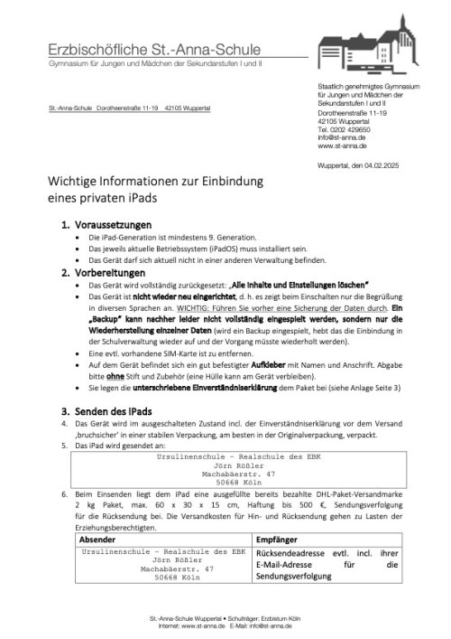 iPad Einbindung PrivatgeräteHier finden Sie die Einverständniserklärung zur Einbindung eines privaten Bestandsgeräts (iPad). |