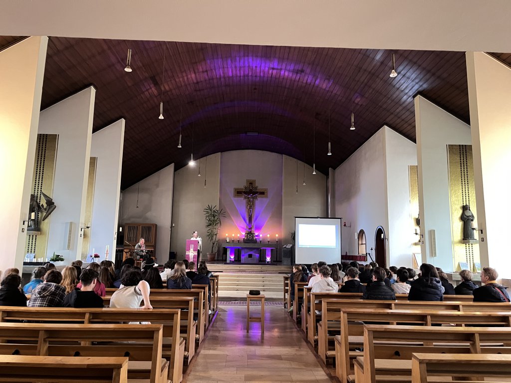 Während der Tage wurde inhaltlich mit den Teamern zum Thema Beziehung, falsche Freunde, Stress und Entspannung gearbeitet. Auch für Mathe-Fans fand sich in der Mittagspause noch Gelegenheit am Känguru-Wettbewerb teilzunehmen (s.Bild). Allerdings haben die Handys der Schülerinnen und Schüler abends sicherlich mehr Schlaf erhalten als diese (s.Bild). Morgen- und Abendimpulse rundeten den Tag in der frisch renovierten Kapelle ab (s.Bild). Abschließend waren wir am Abreisetag von Abbé Pauljo zu einer Messe eingeladen.