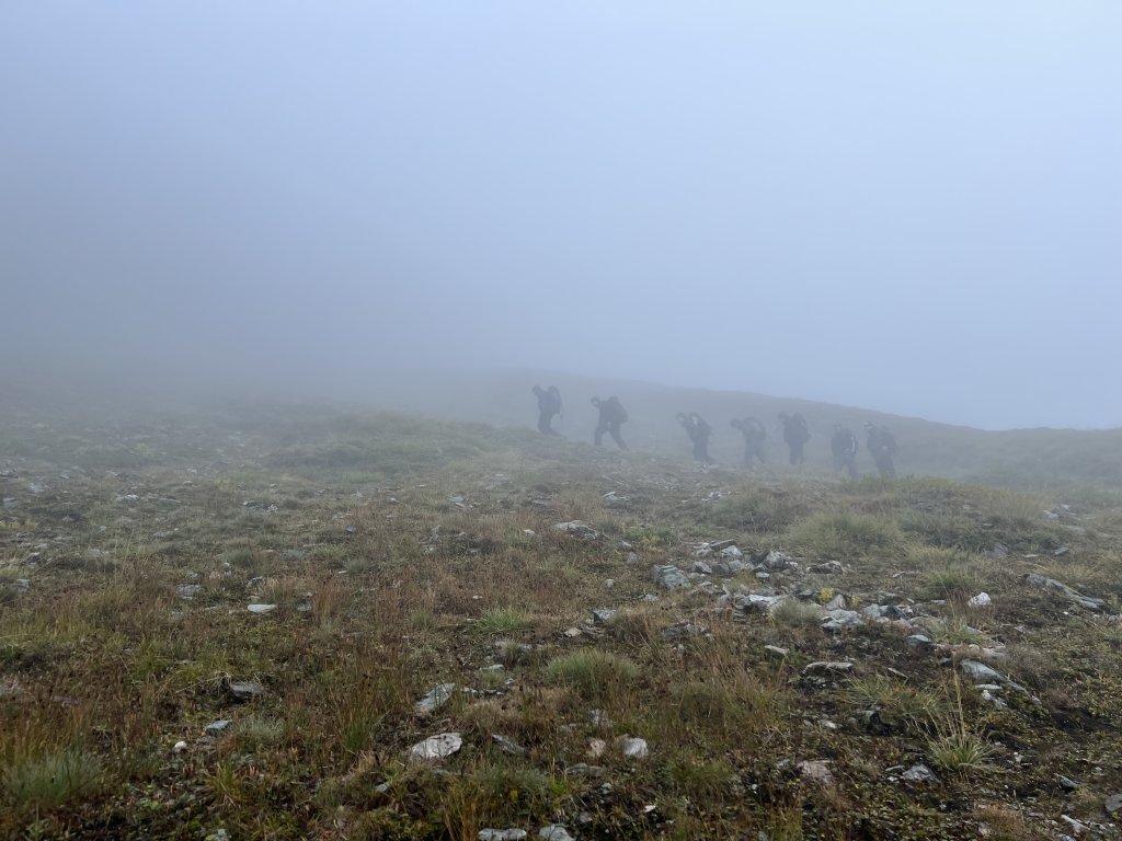 Nach diesem unerwarteten Start in den Tag konnten wir schließlich entspannt in die nächste Wanderung starten. Trotz der verhältnismäßig kurzen Dauer von etwa viereinhalb Stunden erlebten wir einiges. Der spannende Weg über das Kreuzseeschartl 2810m wurde durch das passende Wetter – Kälte, Nieselregen und Nebel – atmosphärisch perfekt unterstützt.