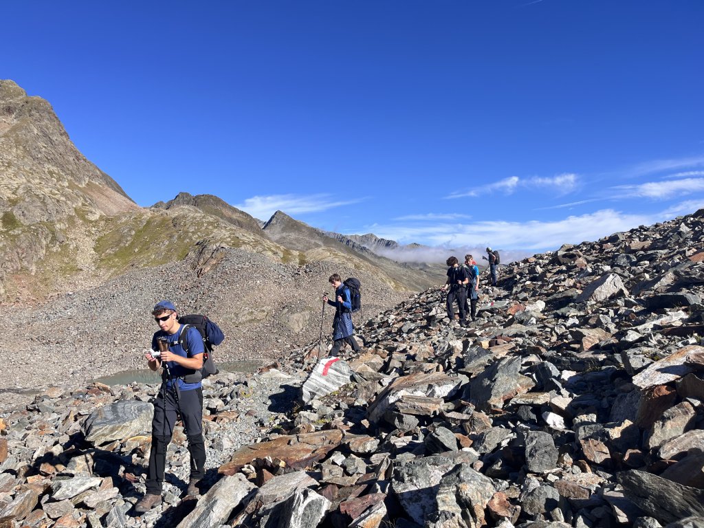 Nachdem wir gestern vom ehem. bayerischen Landesschülersprecher, Marcel, auf der Ingolstädter Hütte vorzüglich bedient und verpflegt wurden, einen grandiosen Sonnenuntergang sahen, Empfang hatten und mit einem Flügelhorn zur Nachtruhe aufgefordert wurden, dachten die Schüler*innen, dass es nach der Ingolstädter Hütte definitiv nicht mehr besser werden kann. Besser vielleicht nicht, aber ich wusste, dass die Peter-Wiechenthaler-Hütte garantiert nicht enttäuscht.