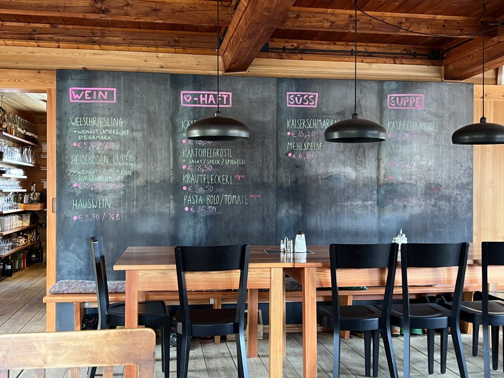 Kurze Zeit später erreichten wir die Winklerner Alm. Dort wurden wir von dem jungen Kellner Nils strahlend mit den Worten begrüßt: „Seid ihr die Wuppertaler? Ich hab schon viel von euch gehört!“ Es stellte sich heraus, dass die Düsseldorfer Gruppe, die zwei Tage vor uns hier gewesen war, bereits ausgiebig von unseren gemeinsamen Erlebnissen erzählt hatte. Wir ließen uns bei herrlichem Panorama und Sonnenschein das Mittagessen schmecken – Schlipfkrapfen und Kaiserschmarrn – und warteten auf den Rest der Gruppe.